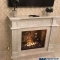 В качестве очага был использован электрокамин с 3D эффектом пламени. Материал каминной облицовки – светло бежевый мрамор Crema Delicato и темно коричневый мрамор Emperador Dark.