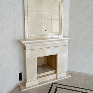 Портал камина из испанского мрамора Crema Marfil. Для это камня характерны мягкие, спокойные тона теплых оттенков с едва заметными прожилками. Не зря этот вид мрамора пользуется широкой популярностью. Его ненавязчивая текстура очень хорошо передает архитектуру изделия, не скрывая светотени и не перетягивая внимание на себя. Такие мягкие переходы полутонов камня характерны только для природных материалов. Crema Marfil – один из фаворитов в средиземноморском стилe среди мраморов.