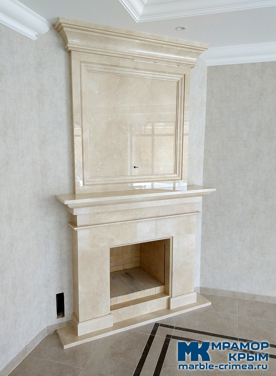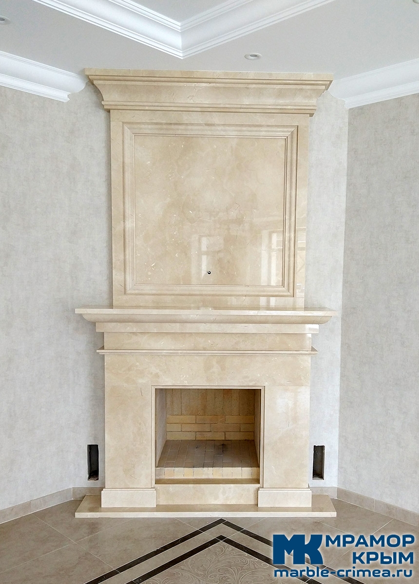 Портал для камина был полностью спроектирован и изготовлен специалистами компании Мрамор Крым.