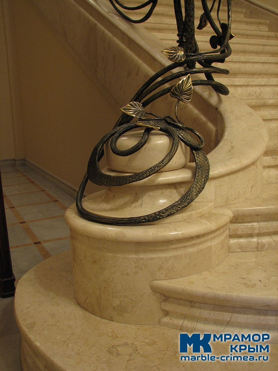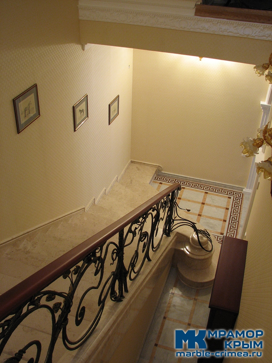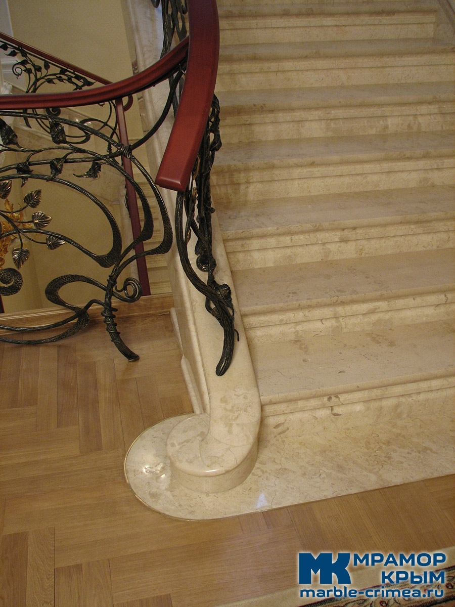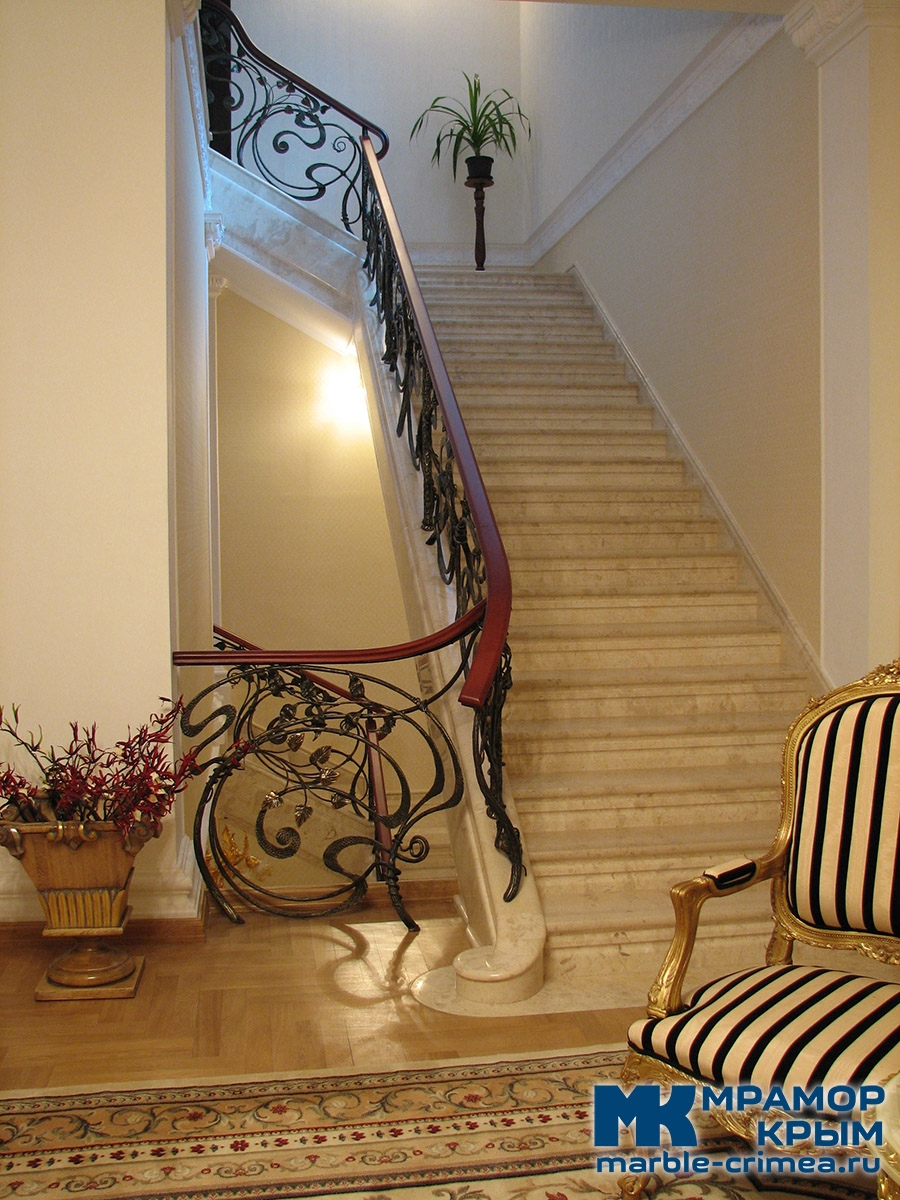Предприятие Мрамор Крым изготавливает индивидуальные облицовки лестниц из мрамора и прочих натуральных камней в любом стиле.