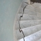 Мы этой участи тоже не избежали. Прошу любить и жаловать! Мраморная лестница в стиле модерн. В проекте использовали два вида мрамора. Итальянский Bianco Carrara и испанский Emperador Dark. Выше упомянутый «удар бича» (теперь уже в трехмерном пространстве) расположился на винтовом лестничном марше. Лестница из камня как нельзя лучше позволила реализовать данную технику в интерьере дома. На проступях есть антискользящие резы. А фигурные фаски на каменных проступях и подступенках добавили выразительности. Последнее дополнение к лестнице из мрамора – мраморный плинтус. Очень важно было его изготовить так, чтобы он полностью повторил радиус эркера здания и не имел изломов.