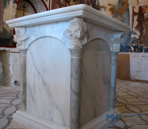 Мраморные серафимы. Элементы престола из натурального камня. Инкерманский Свято-Климентовский монастырь. Храм Св. Пантелеймона.