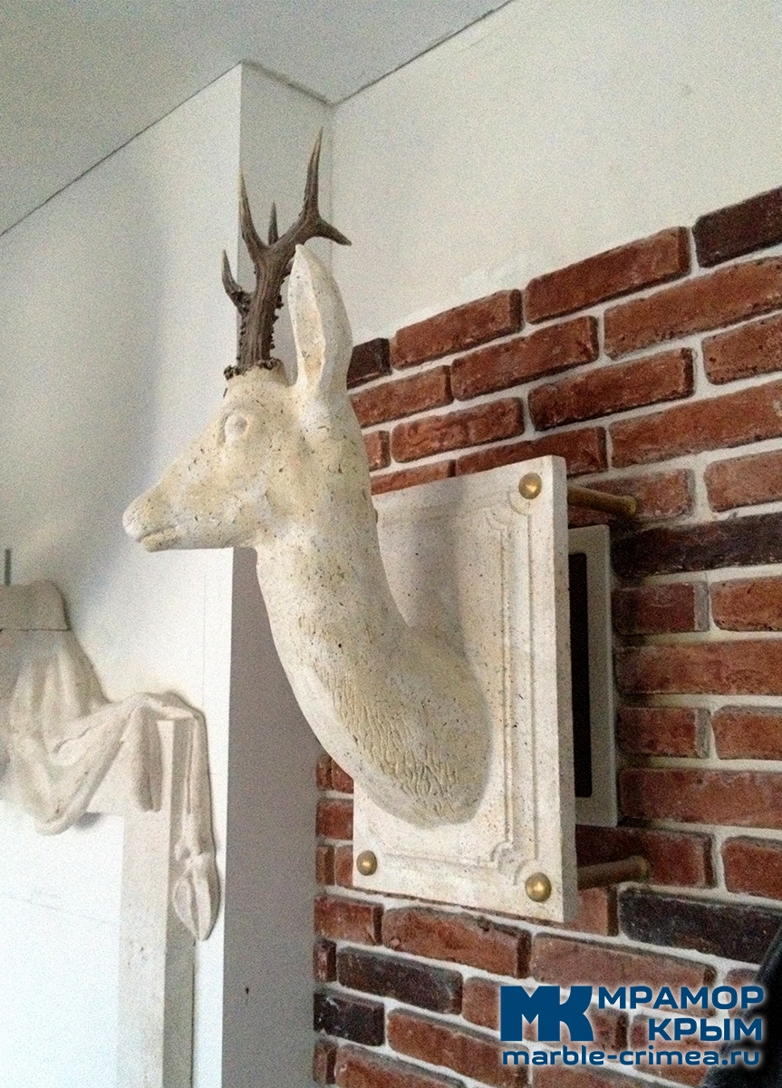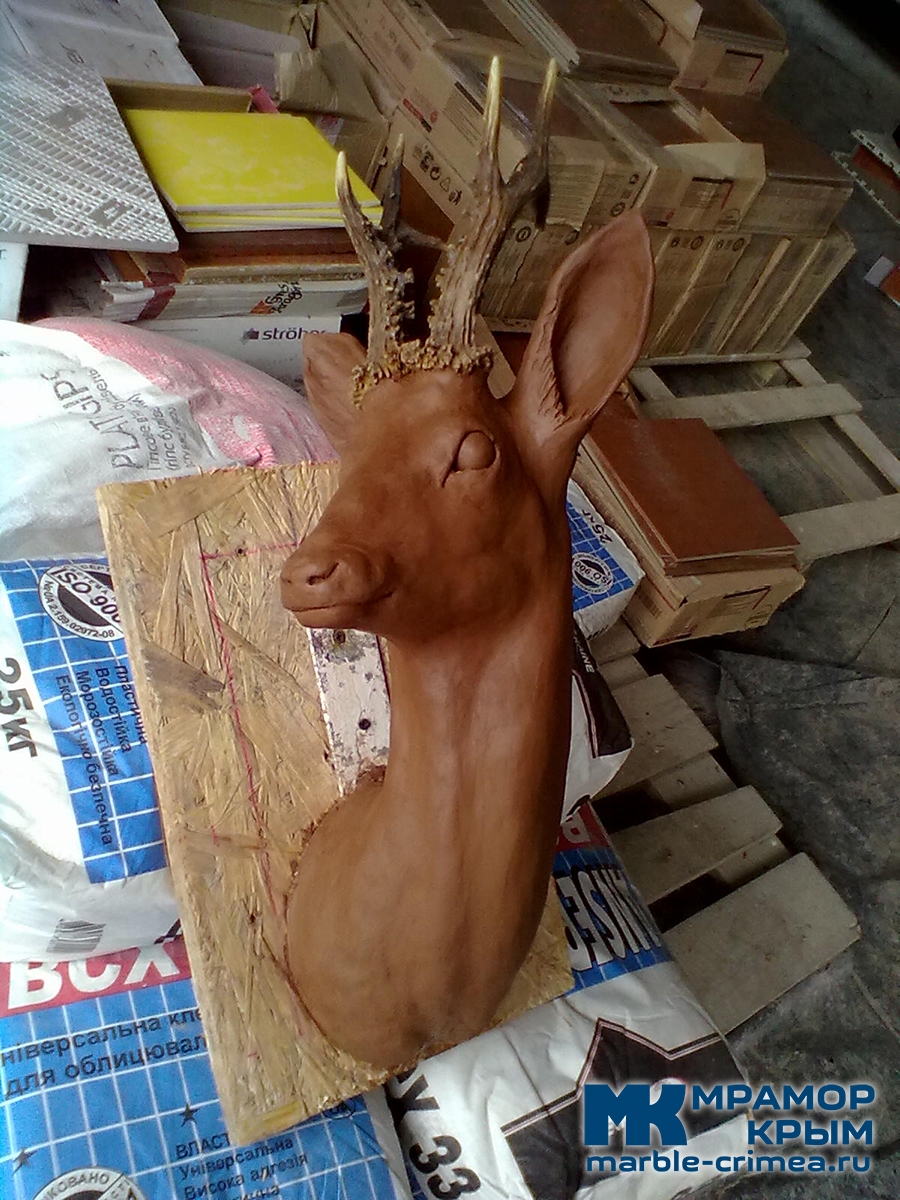 Скульптурные работы из камня, да еще и на животную тематику - это очень трудозатратная тема, требующая годы на её осваивание. Вообще существует отдельная узкая ветвь деятелей искусства - анималисты. Так, что не судите строго. ) На всякий случай, ни одно животное при изготовлении данного изделия не пострадало. Скульптура косули - это только часть общей композиции охотничьего камина. Материал - крымский известняк. Косуля, тоже наша, крымская.