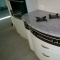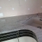 Современная мода на встраиваемую технику находит своих почитателей все чаще и чаще. Наш заказчик пошел дальше, предложив врезать конфорки варочной поверхности непосредственно в гранитную столешницу. Это придало поверхности столешницы более монолитный вид и визуально расширило рабочую площадь. Предварительно был проведен тест на предмет нагрева поверхности гранита конфоркой. Эксперимент показал, что гранитная столешница нагревалась в допустимых пределах даже на предельных величинах использования конфорок. Еще одной особенностью столешницы являются водоотводы на плоскости в месте расположения раковины. Они позволяют при сушке посуды стекать воде обратно в раковину и придерживаться идеи общей монолитной поверхности столешницы из натурального камня. Последний штрих - это гранитный плинтус, который эстетично обыграл подоконник и правое крыло столешницы.